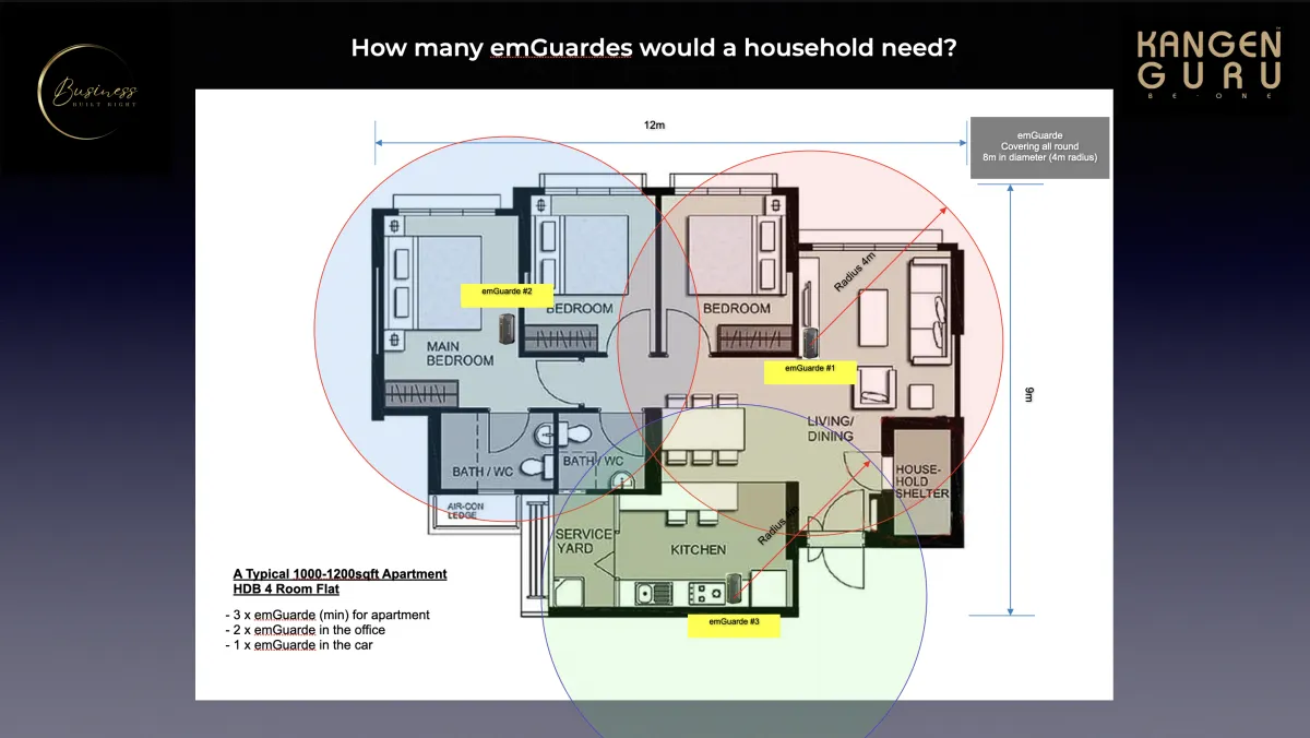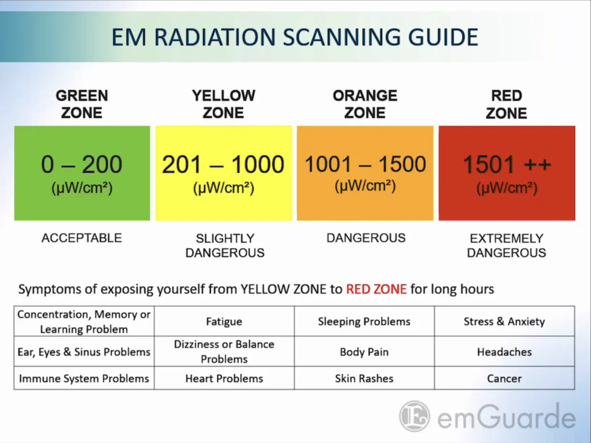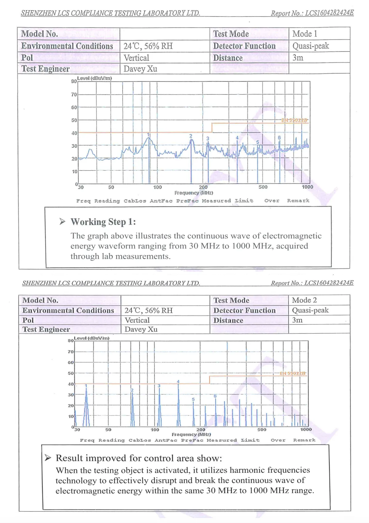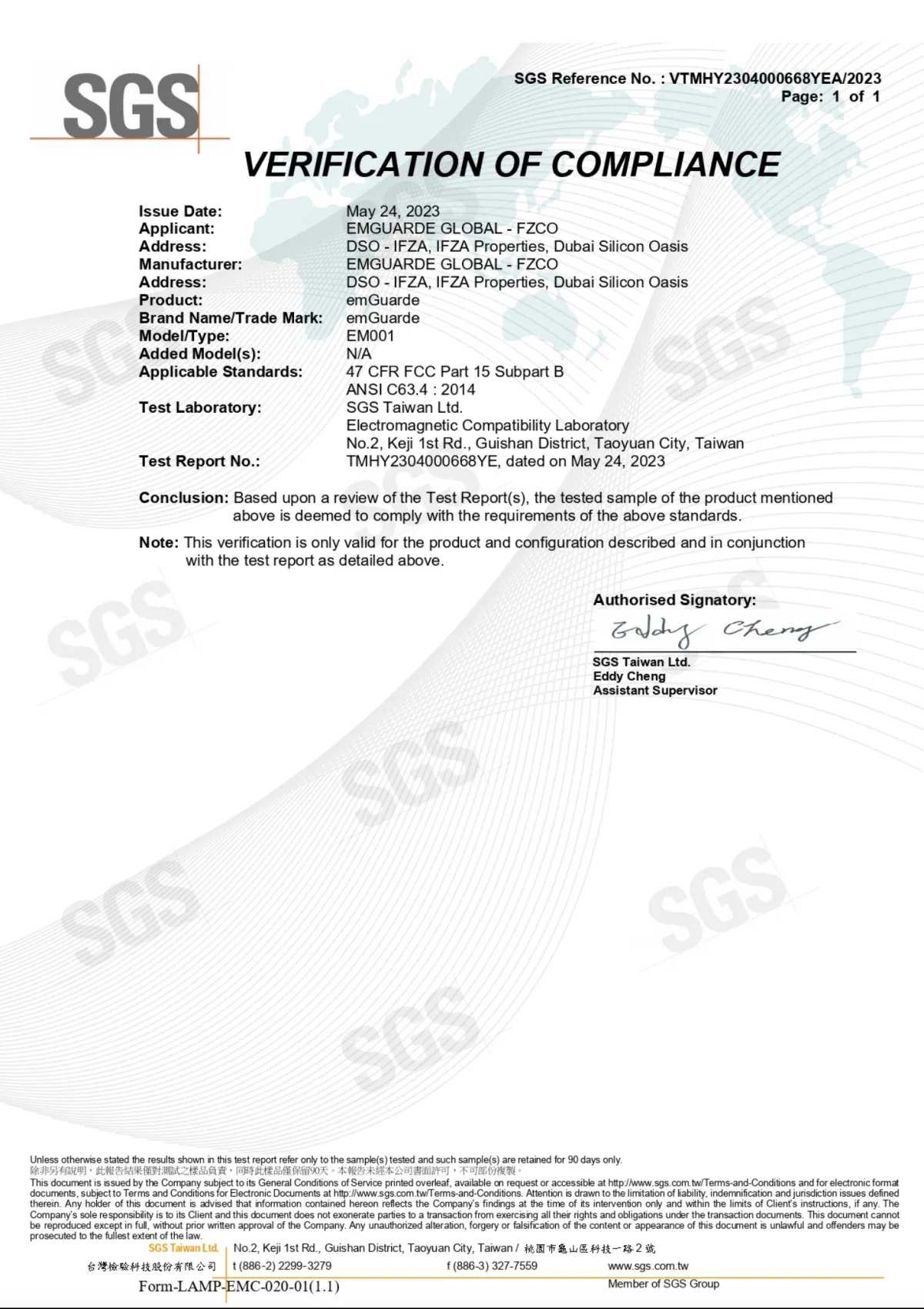 • emGuarde’s technology is breaking the pathway of frequencies between 3 MHz to 1000 MHz. Hence, reducing the high frequencies electromagnetic noise within its coverage range. The high frequency electromagnetic noise can be measured in microwatts (unit of power density)