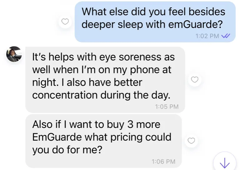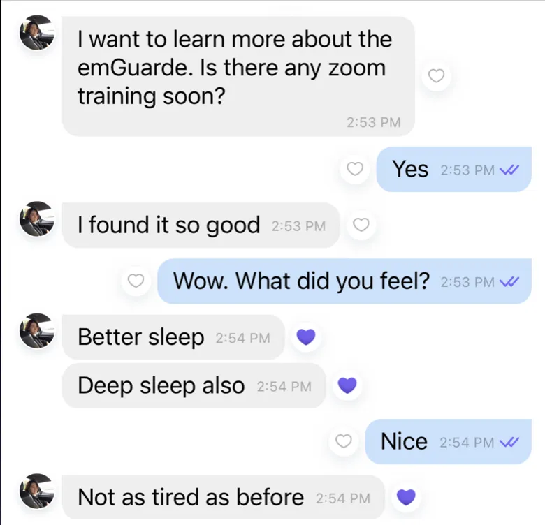 After installing emGuarde for the first night, I slept like a baby from 10 pm to 6 am and woke up feeling refreshed and recharged!